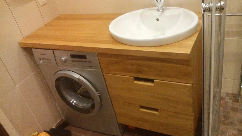 встраиваемая раковина. Этот вариант является наиболее классическим (а для большинства людей еще и единственным), предполагая размещение раковины по всей поверхности (или по большей части) тумбы, в которой для этого подготовлено углубление нужных размеров. Неудобство этого варианта заключается в необходимости герметизировать стыки и швы, поскольку вероятность попадания влаги в шкафчик велика;