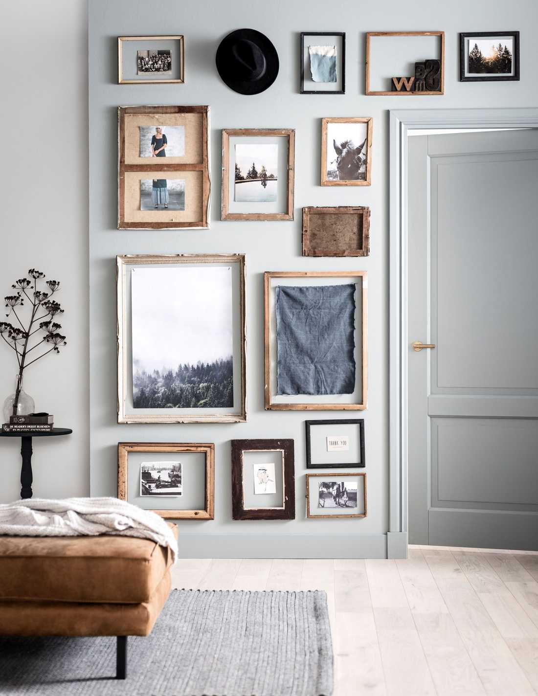 Немаловажную роль при декорировании стен личными изображениями играет уже существующий интерьер в комнате. Часто так случается, что обстановка в зале, коридоре или спальне просто надоедает владельцам. Делать ремонт не хочется, но освежить комнату нужно. Поэтому достаточно взять подходящие снимки, выбрать для них рамы или не обрамлять вовсе, отыскать подходящую схему размещения. Для каждого стиля существует свой определенный прием:
