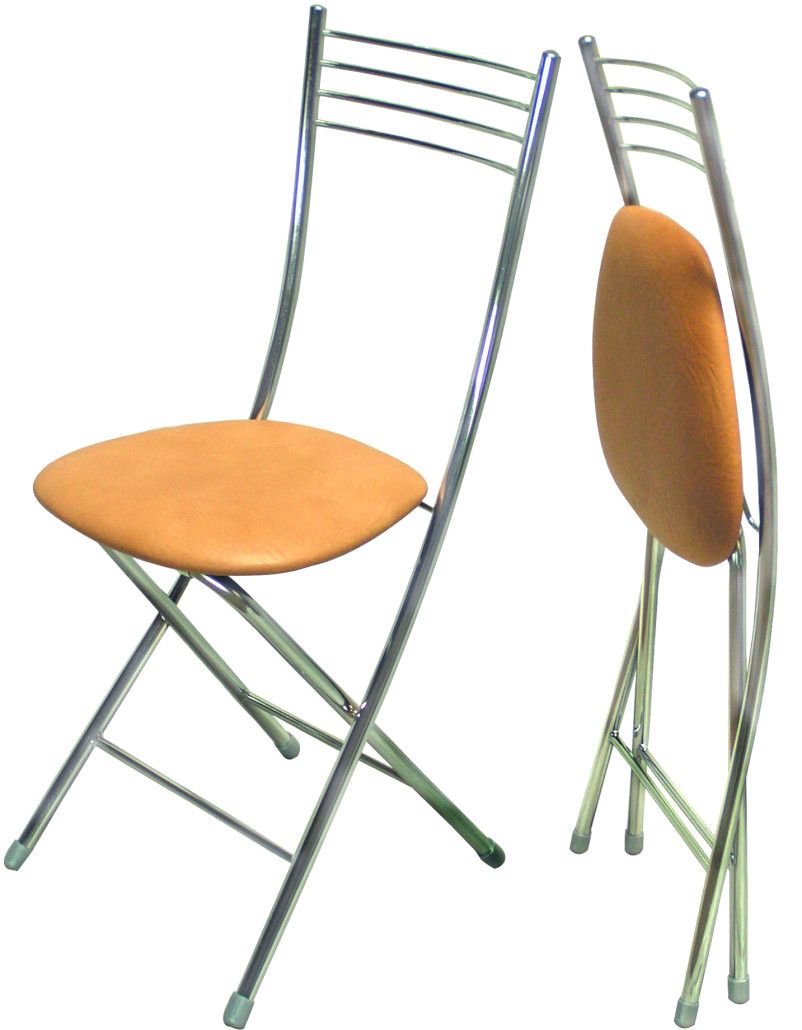 Ещё один отличный вариант — складные стулья с металлическим каркасом и мягким сиденьем. Они устойчивы и долговечны. Такие модели не боятся высоких нагрузок и хорошо вписываются в различные интерьеры. В комбинации со стеклянным столом они смотрятся лучше всего.