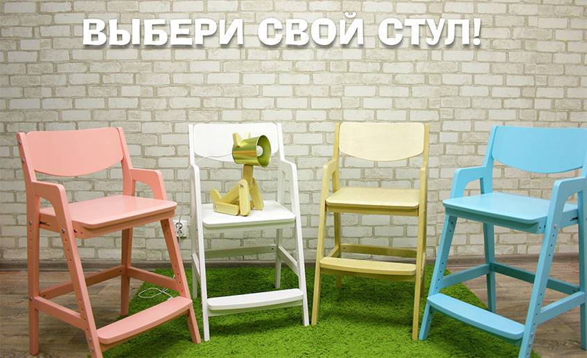 Рекомендуемый возраст: от 6 мес. до 16 лет. Большой выбор цветов. Есть возможность дополнительно приобрести комплект ограничителей, съемный столик и мягкие подушки. Выдерживает до 120 кг. Стул довольно тяжелый, за счет этого он устойчив и ребенок не способен его перевернуть. Используемые в производстве материалы – высококачественный МДФ и фанеры (класс Е1). Покрытие – акриловая водоэмульсионная краска (Самая экологически чистая краска из существующих на данный момент). Средняя цена: 3990 р. Сайт производителя: www.roststul.ru