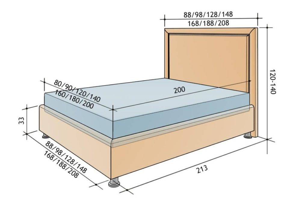 В свою очередь, размеры кровати включают в себя также габариты каркаса мебели.