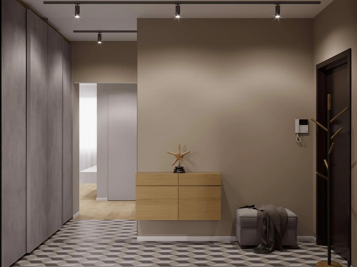 Цвет, фактура и освещение используются для деления пространства на зоны. Отделить прихожую от коридора можно несколькими способами или их комбинациями: