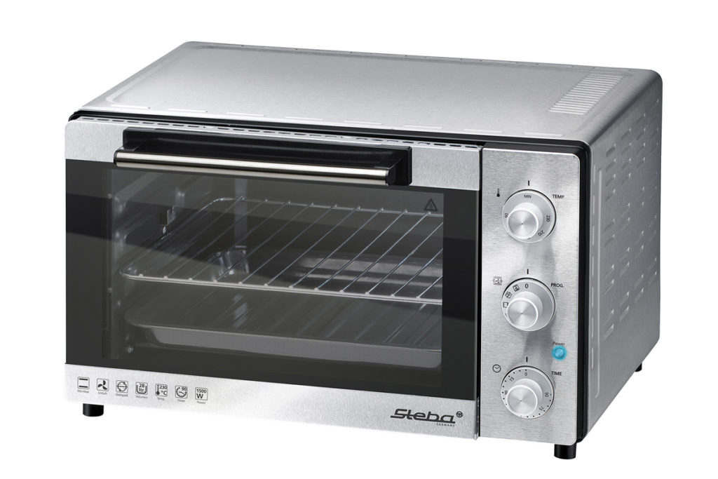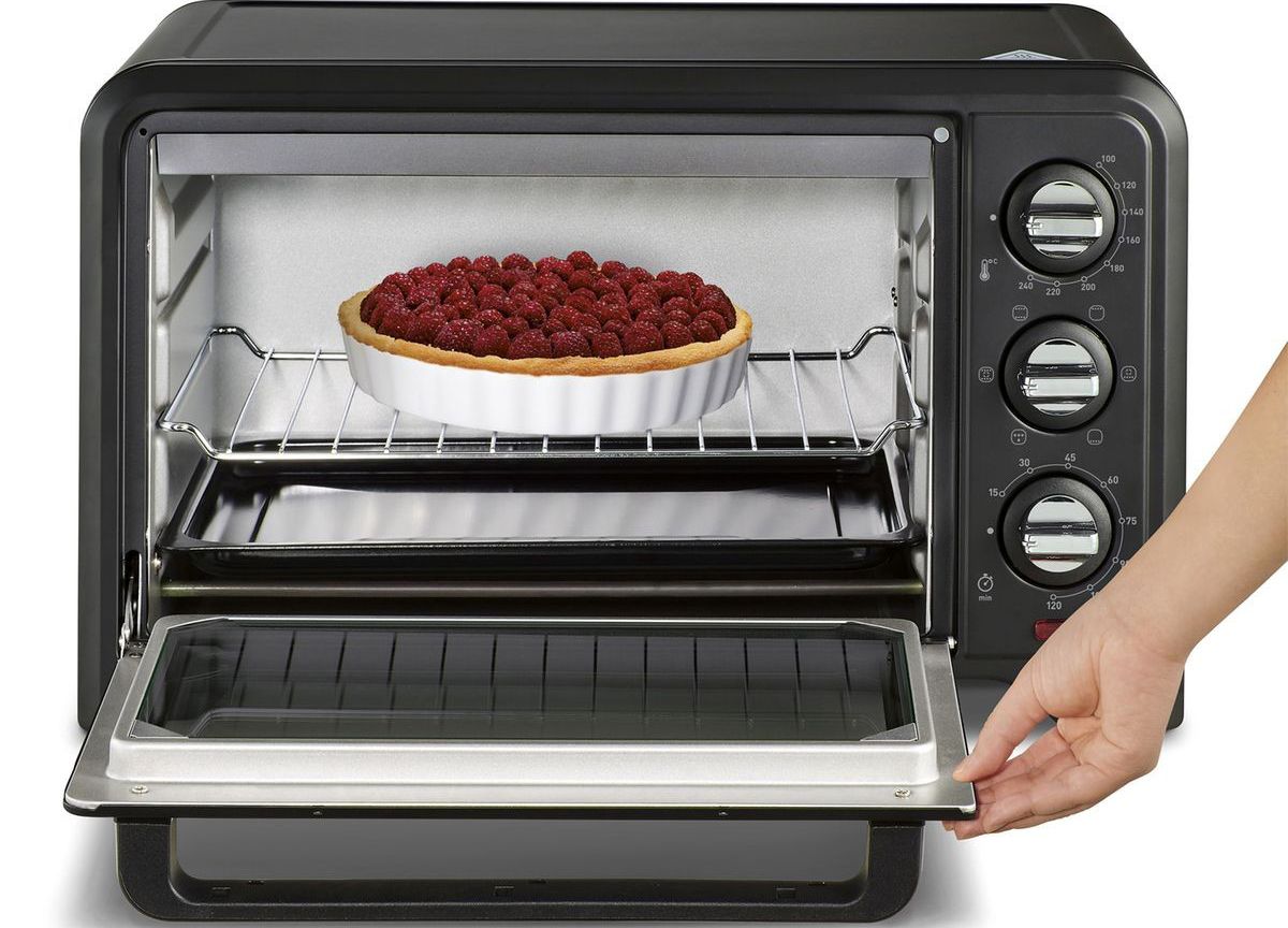 Мини-печь с объемом камеры для выпечки 28 литров и мощностью 1400 Вт. Он быстро нагревается и может быть настроен на необходимую температуру в диапазоне от 90 до 230 градусов. Прибор имеет большой выбор режимов работы – верхний и нижний нагревательные элементы могут быть включены вместе или раздельно, в сочетании с конвекцией и вертелом