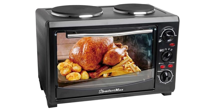 Универсальное устройство, способное выполнять роль мини-кухни. Ростер состоит из электрической духовки и двух конфорок. Такого набора достаточно, чтобы приготовить большинство блюд на даче, в бытовке, дома.