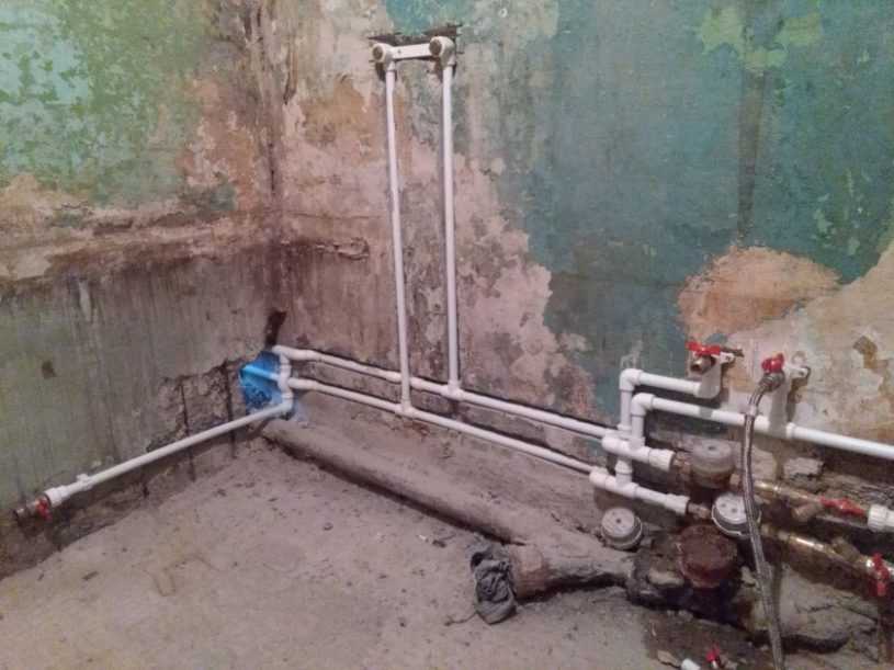 - Производится разводка труб (прокладка коммуникаций, замена стояков канализации, воды и отопления).