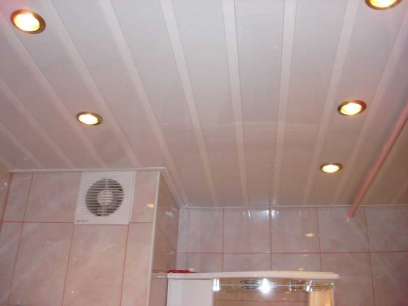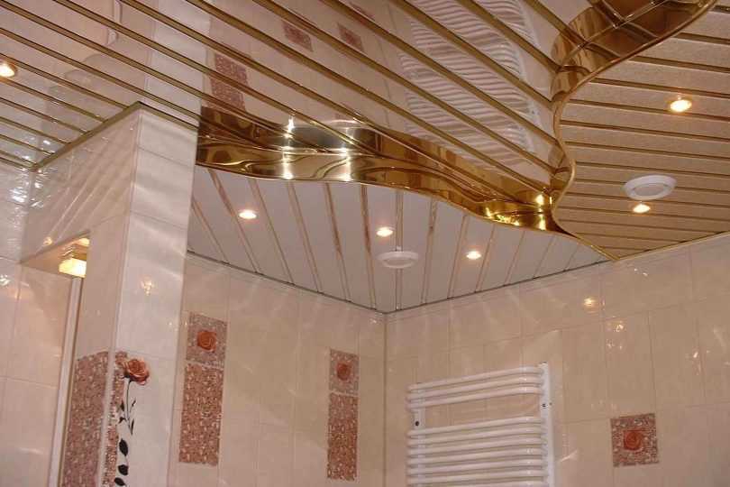 - Затем решается вопрос, чем отделать ванную комнату. Потолочную поверхность, стены изготавливают различными способами: из вагонки, пластика, делают натяжные потолки, из гипсокартона или штукатурят ее.