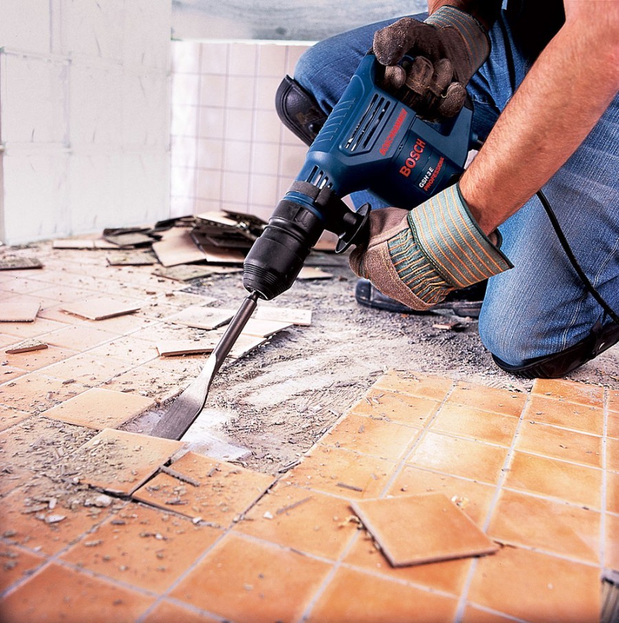 - перфоратор с широким зубилом, сверлами, насадкой миксером