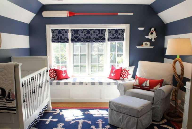 Однако, не утяжеляйте пространство, если в нем уже достаточно подобных изображений на стенах. В таком случае пригодятся портьеры, имитирующие паруса или рыболовную сеть. Морская тематика пользуется большой популярностью у мальчишек.