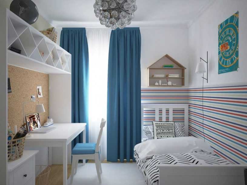 Если в комнате живут двое детей разного пола, то пространство лучше разграничить на две зоны. Одну часть комнаты украсить в нежные цвета, а другую в цвета с холодным оттенком, при этом окно тоже стоит декорировать шторами разного цвета.