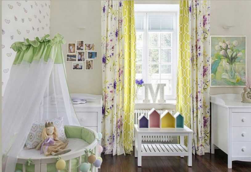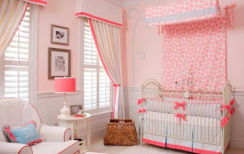 Для новорожденных выбирайте нежные шторы не только привычного розового, но и прочих пастельных оттенков. По контуру они могут быть обшиты яркой лентой.