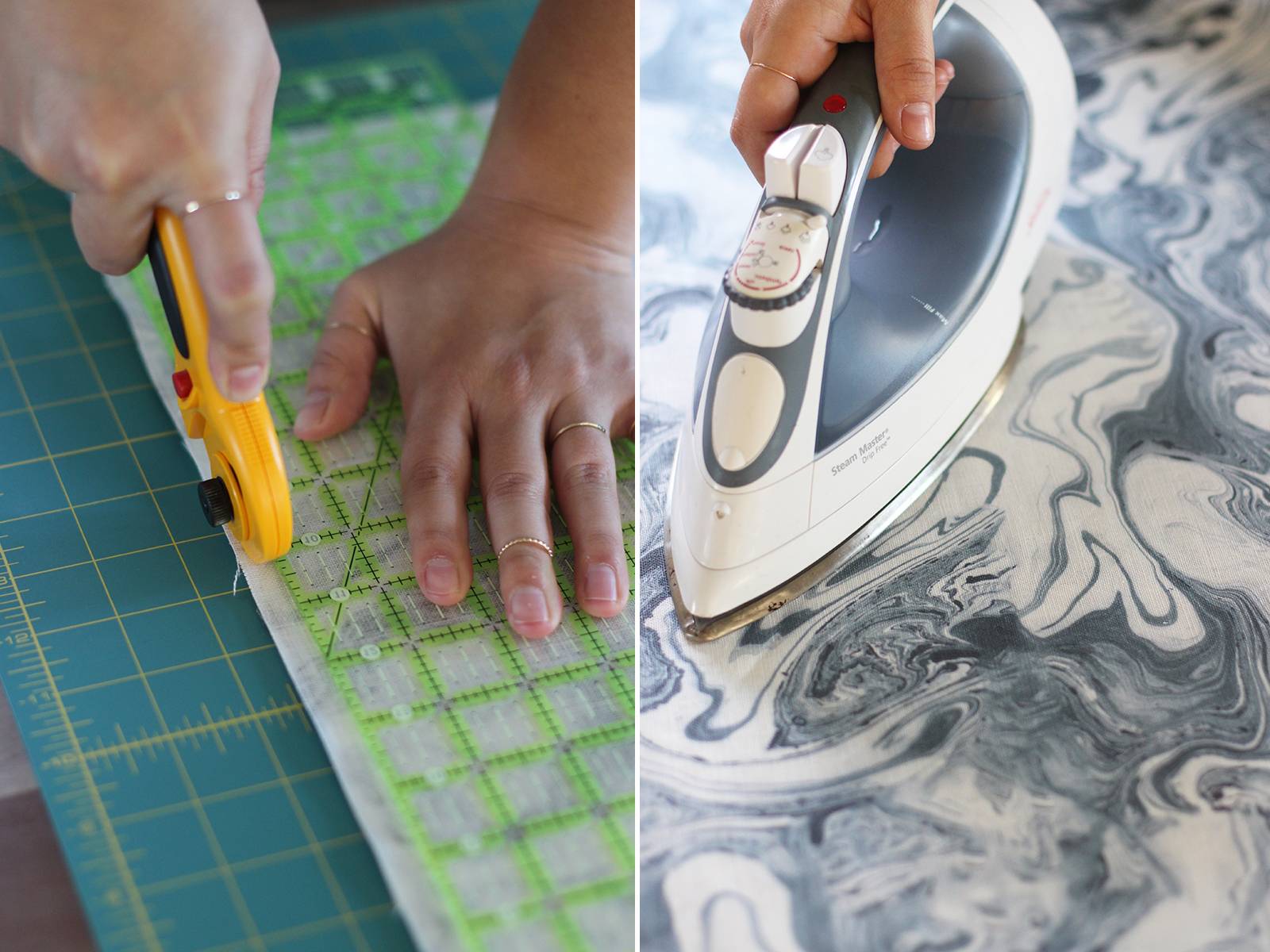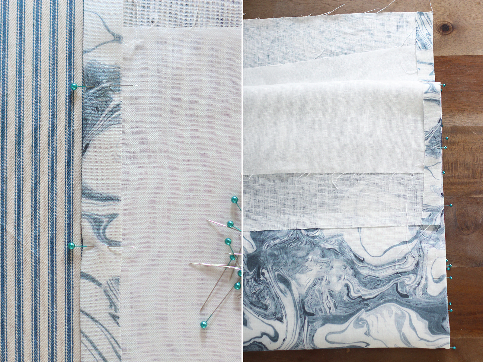 Если вы используете подкладочную ткань, положите ее поверх изнаночной стороны основной ткани. Загните вертикальные края внутрь и пройдитесь по ним утюгом.