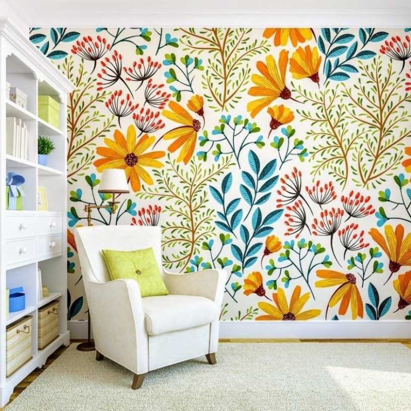 Жителям городов зачастую не хватает отдыха, а потому цветочный рисунок на стене создаст ощущение единения с природой, подарит гармонию и умиротворение.