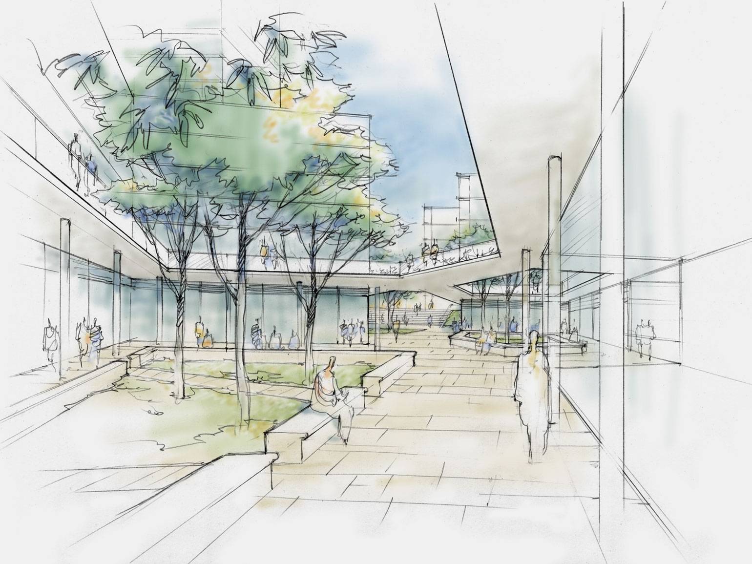 Архитектурное рисование ближе к сдержанному скетчингу, чем к точному черчению: его выполняют любыми графическими средствами — маркерами, карандашами, углём, акварелью, тушью.