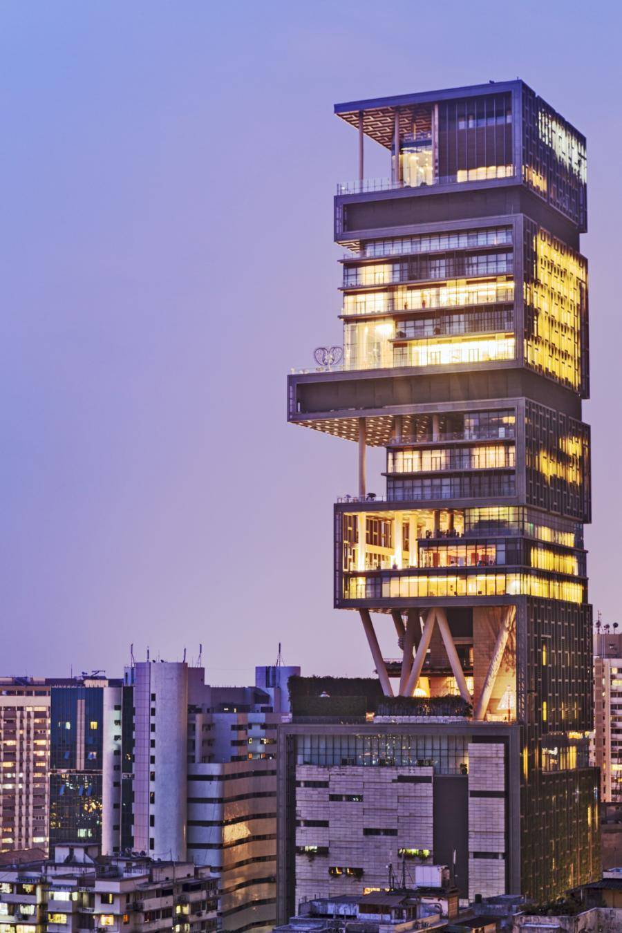 Индийский нефтяной магнат Мукеш Амбани возвел в центре Мумбаи личную высотку в 27 этажей. Общая площадь постройки 37000 квадратных метров, проектом занимались американские архитекторы. Для семьи из шести человек здесь есть все необходимое для комфортного проживания и даже много-много больше: 6-этажная парковка на 168 автомобилей, автосервис, тренажерный зал, балетный зал, театр, бассейны, отдельный уровень для джакузи, 3 вертолетные площадки.
