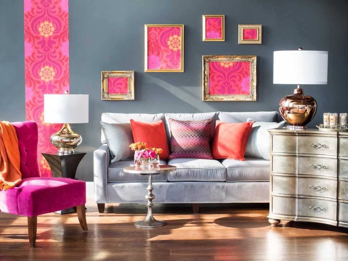 В интерьере гостиной стилисты рекомендуют использовать различные оттенки розового: