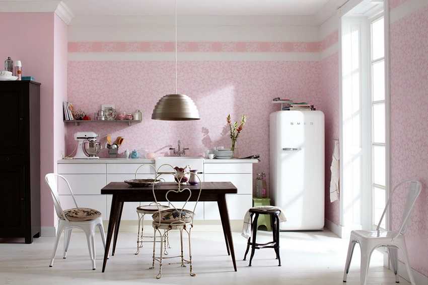 Сочетание розового цвета с другими оттенками в интерьере кухни