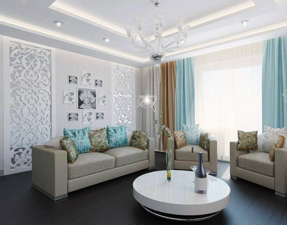 Это самое большое помещение, где пребывает не только семья, но и гости, именно поэтому здесь обязательно нужно создать атмосферу уюта и спокойствия, чтобы можно было находиться и отдыхать. Предпочтительно помещения оформляются в бирюзовый оттенок частично, и он будет не холодным, а теплым. Дополнительно цвет разбавляется аксессуарами теплых цветов.