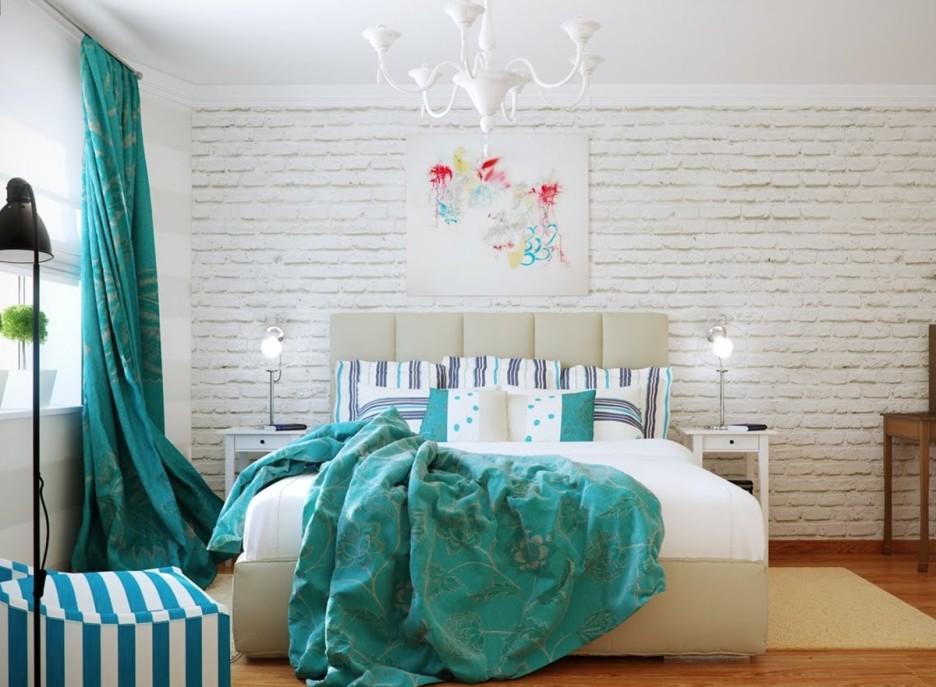 Палитра бирюзового богата спокойными и нежными оттенками, которые оказывают умиротворяющее воздействие, поэтому при правильном применении, бирюзовый отлично пойдет и для спальной комнаты.