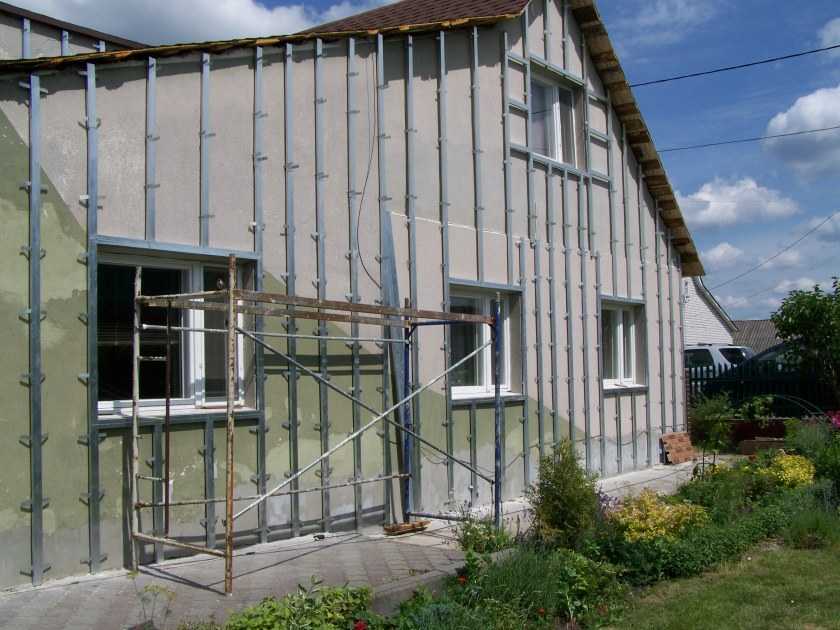 Если высота дома больше, чем длина планок, используют две планки, смонтированные внахлест. При этом верхний профиль нужно подрезать так, чтобы зазор между планками составлял 9 мм, а нахлест — 25 мм.