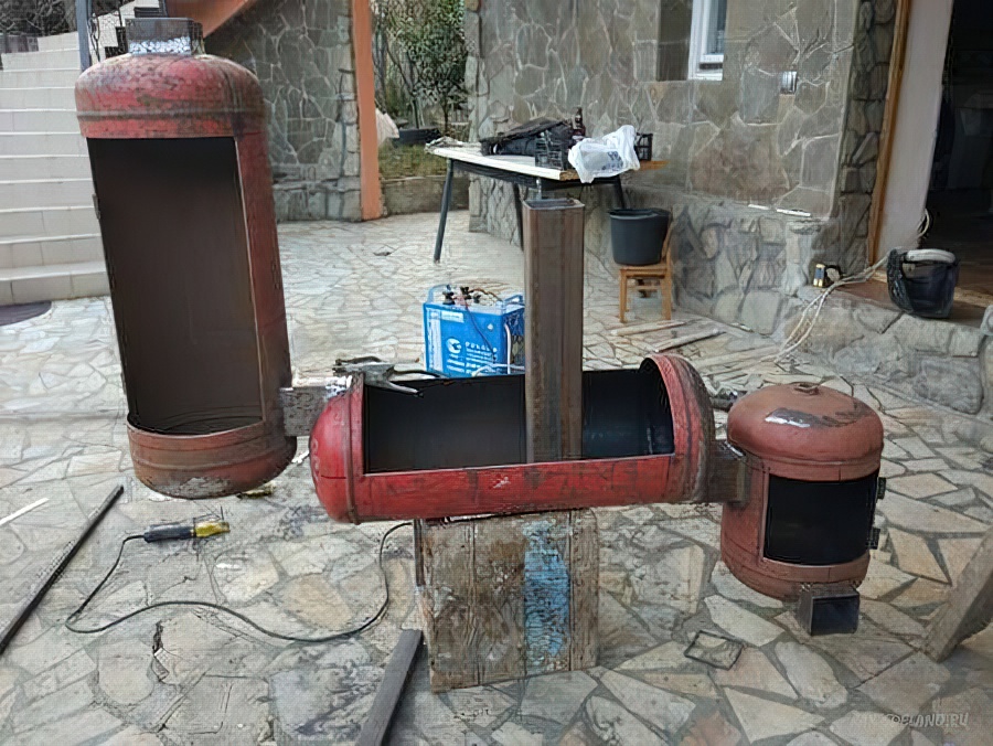 - Вырезать в торцах 2 баллонов отверстия для дымовой трубы.