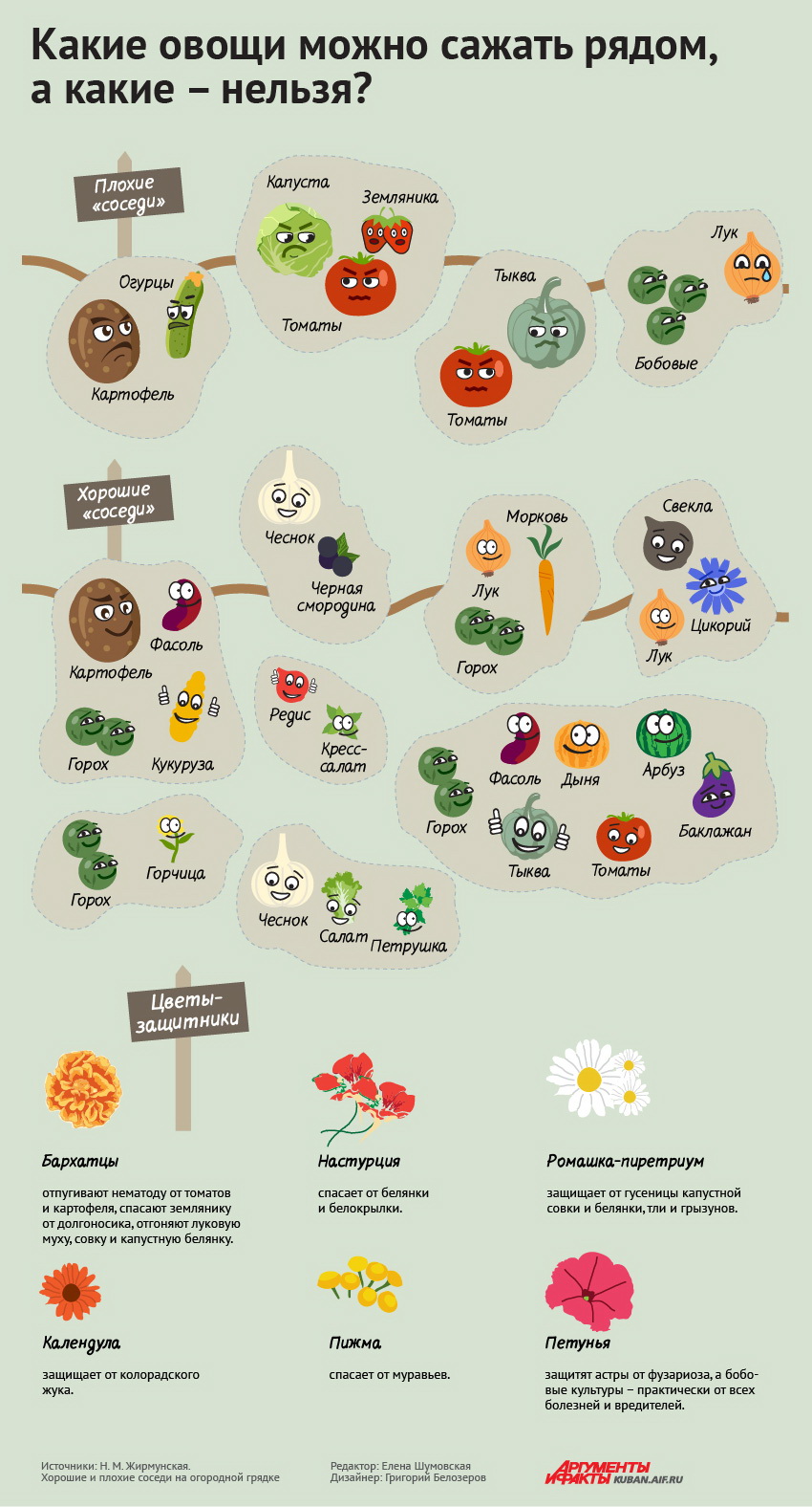 Вот, пожалуй, и все относительно того, что собой представляет совместимость овощей на грядках. Список растений, которые «дружат» и «не дружат» между собой, смотрите на таблице. Пользуйтесь ею — и хороший урожай вам обеспечен!