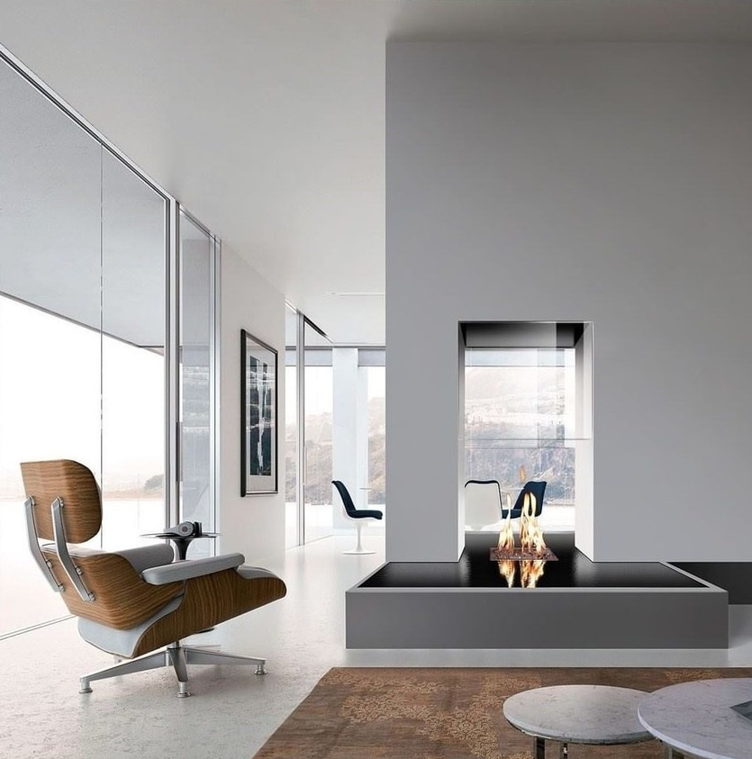 - встроенный электрокамин со стеклянным фасадом;