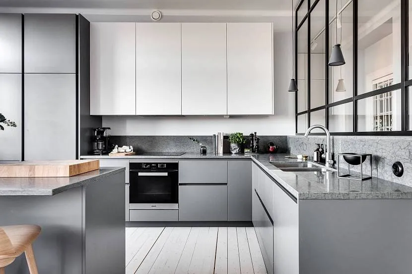 Кухня в сером с деревянными элементами Источник pinterest.com