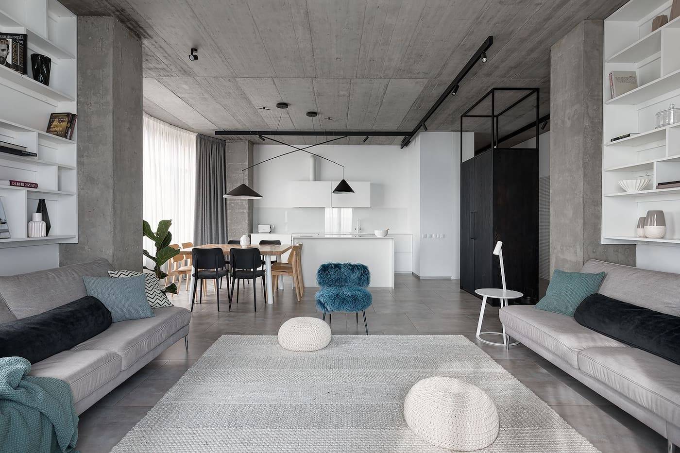 Скользя по отстраненной прохладе отделки, взгляд здесь может наткнуться на бохо-аксессуары и «цыганщину» в обивке мебели