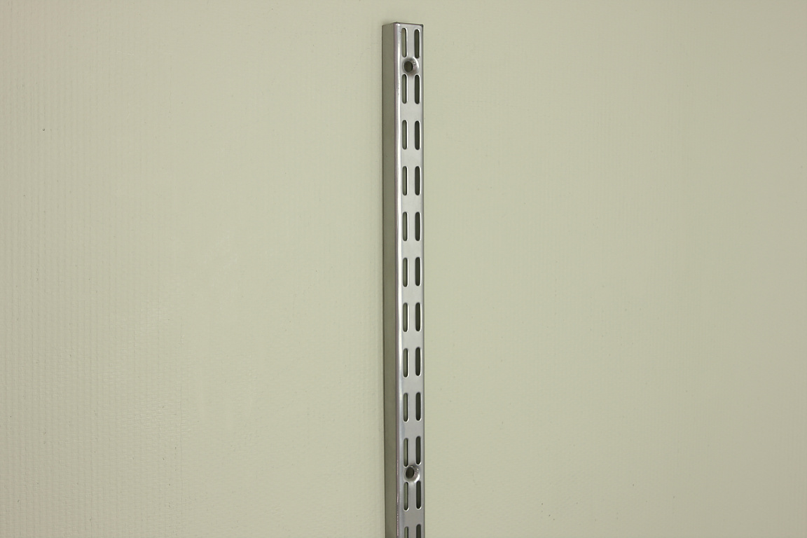 - Настенные. Основная особенность – монтаж осуществляется на направляющие, фиксирующиеся на стенах. Направляющая может изменяться по длине и в ней уже сделаны отверстия, чтобы закрепить основные элементы системы (корзины, полки, сетки).