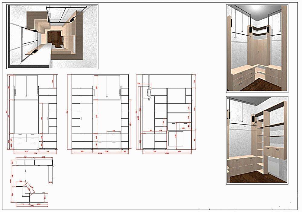 Если создается гардеробная комната своими руками, то нужны чертежи и схемы, по которым будут осуществляться основные работы. В этих документах непременно продумываются основные моменты: