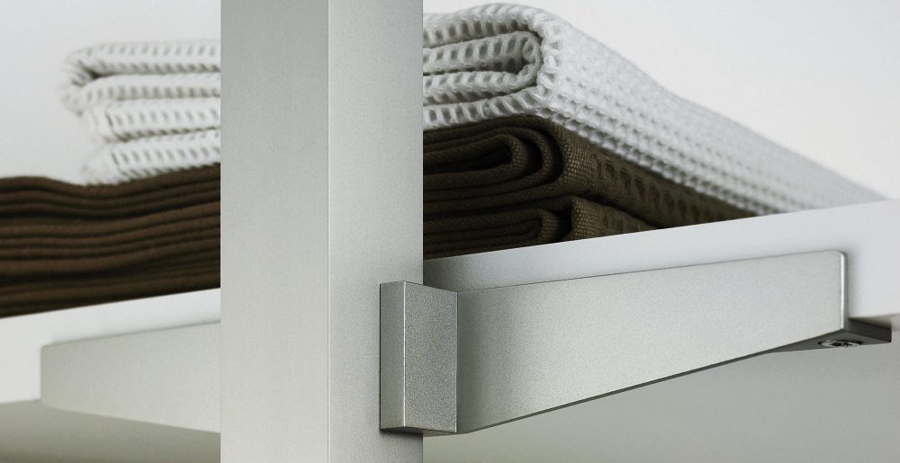 - стеллажи собираются и фиксируются к стенкам гардеробной. Также монтируются дополнительные элементы;