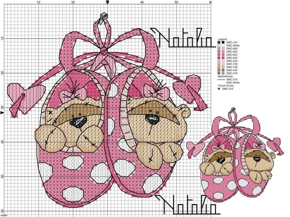 Вышивание крестиком – прекрасное хобби для будущих мам, мамочек в декрете, для заботливых бабушек. Приступая к работе, сперва выбирают схемы, исходя из их сложности. Следует сразу оценить свои возможности и способности, чтобы труды не пропали даром. Начинающим вышивальщицам стоит выбрать простые рисунки, с минимумом стежков и цветов. Затем подбирают цвет нитей к схеме по номерам, которые указаны на самой схеме и на нитках мулине.