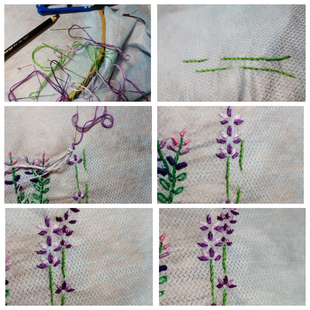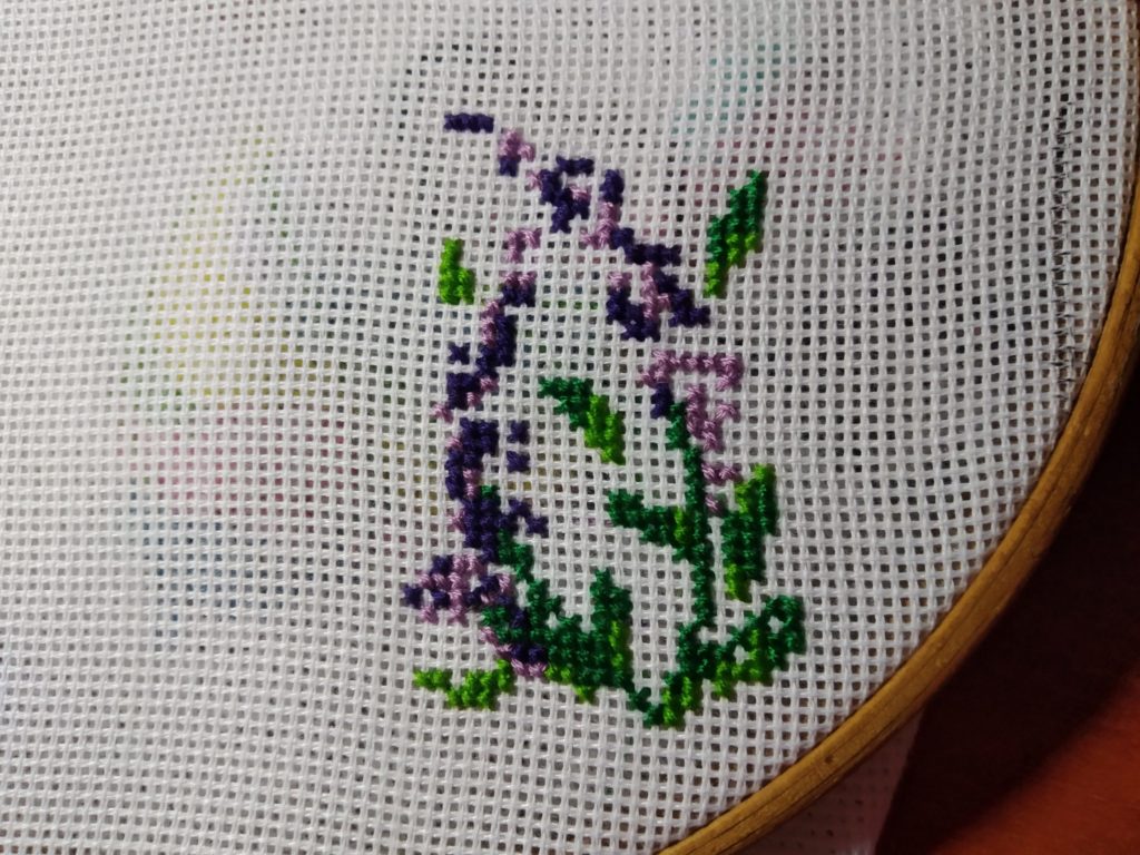 - Лаванду можно вышивать одним цветом и несколькими, совпадающими по оттенкам. Между выбранными цветами должен быть мягкий и постепенный переход.