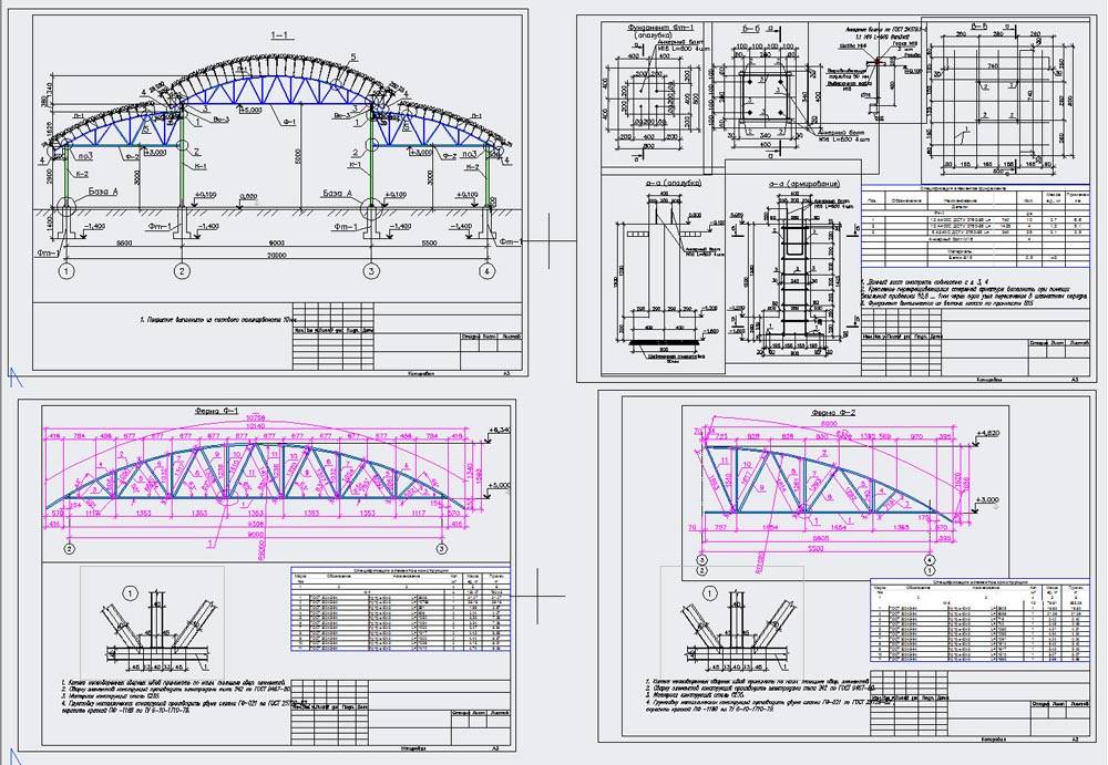 Стропильная система. Материал изготовления может не совпадать с тем, из которого выполнены опоры. Преимущественно используется дерево или металлические профильные трубы, которые дают возможность сооружать крыши с криволинейными поверхностями.