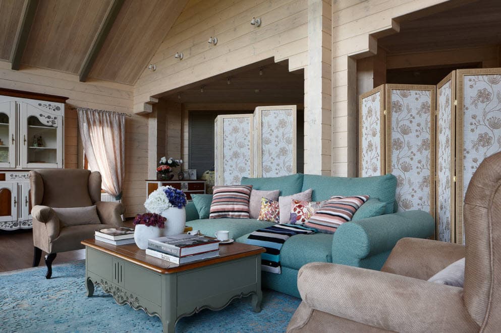 В интерьере жилой комнаты ширма-перегородка помогает разделить пространство на несколько зон. Например, поставив изделие в спальне, с его помощью можно выделить сектор для гардероба или зоны отдыха, поместив туда небольшой столик и кресло. Высота перегородок равна человеческому росту и в среднем достигает 2 метров.