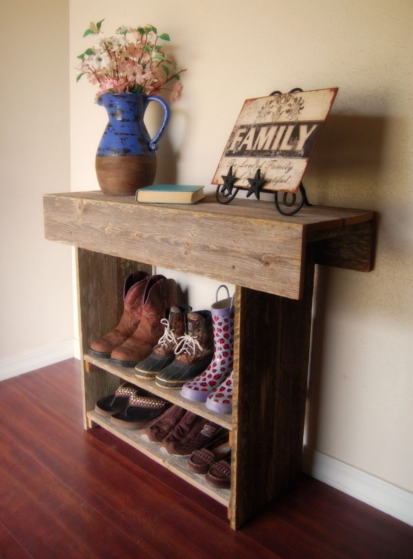 - лофт. Стойки изготавливаются из металла или дерева, практичные. Чаще всего в данном стиле создаются открытые обувницы с небольшими полками;