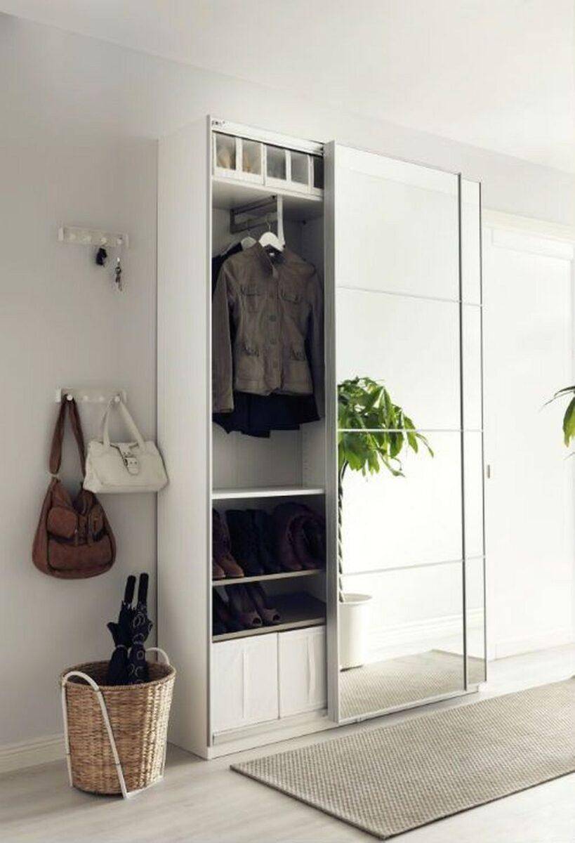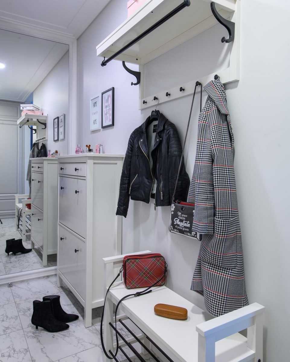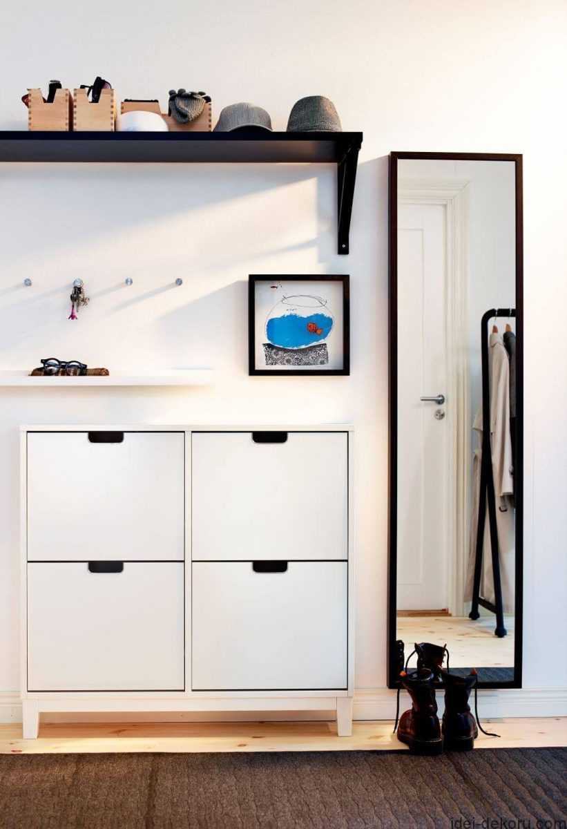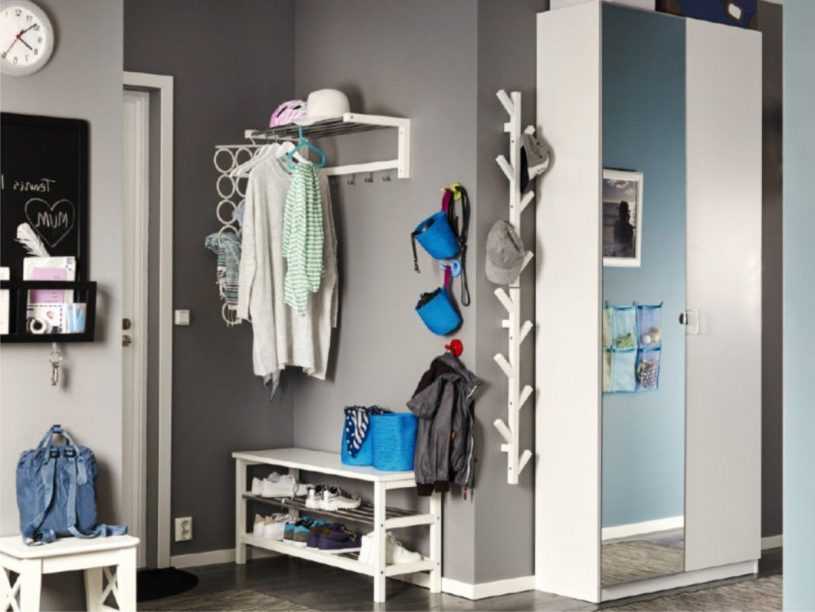 Как и в предыдущем случае, в первую очередь необходимо обратить внимание на шкаф для одежды. В идеале он должен также обладать отсеком для головных уборов и обуви. В том же разделе можно приобрести вешалки в прихожую от икеа
