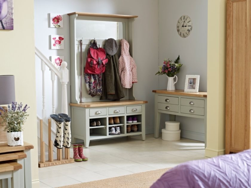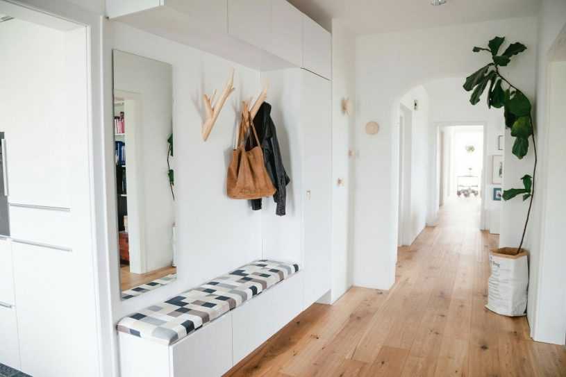 Скамейка или банкетка, на которую можно присесть, чтобы завязать шнурки, или поставить сумку; зеркало; дополнительные органайзеры для хранения перчаток, зонтов и других мелочей – вещи очень полезные, но поместятся не в каждом случае в силу ее размеров помещения.