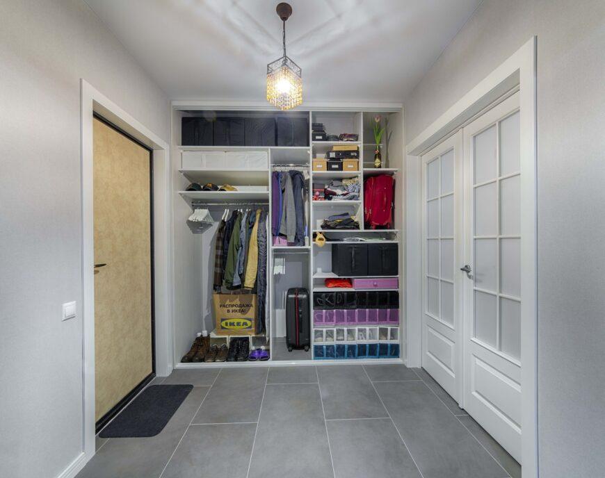 Прихожая в маленькой квартире решит множество проблем с хранением даже для большой семьи, если заранее правильно ее спланировать. Для этого нужно на листе бумаги нарисовать проект помещения с точными параметрами ширины и длины, с отметкой дверей, выключателей, розеток и других элементов. Определите, какие вещи будете хранить в коридоре. Исходя из этого подберите необходимый набор мебели из каталога и прорисуйте его на чертеже, чтобы убедиться, что всё подходит по размеру.