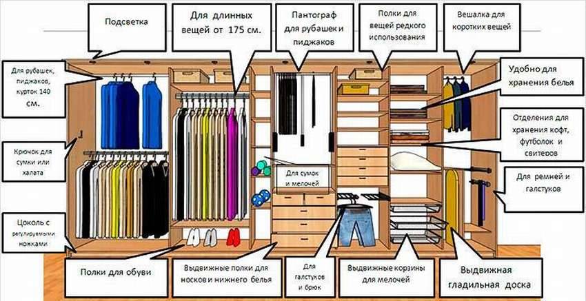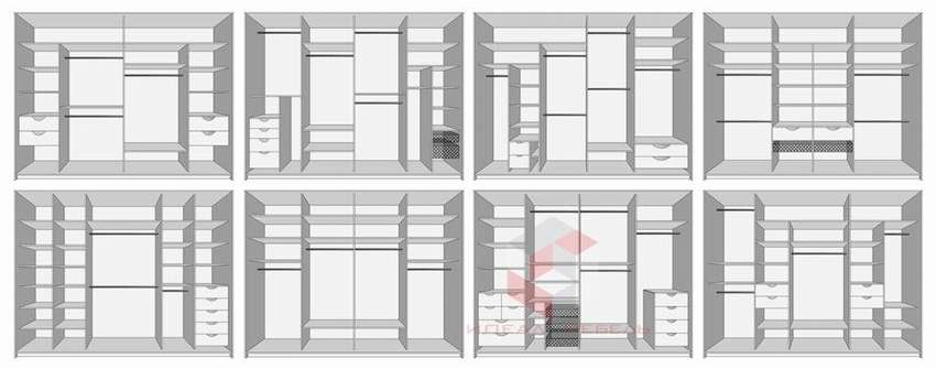 Важно грамотно распределить внутреннее пространство шкафа купе