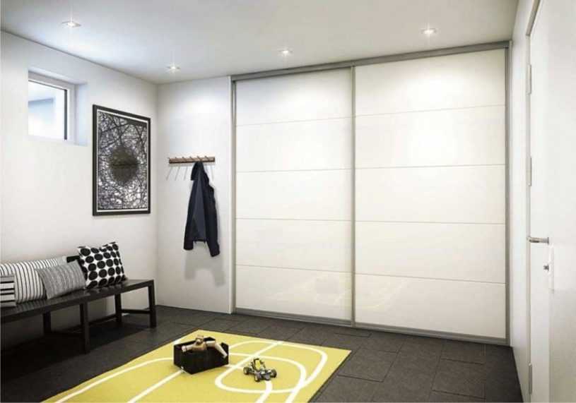 - Для квадратного коридора, более уместна установка конструкции во всю стену.