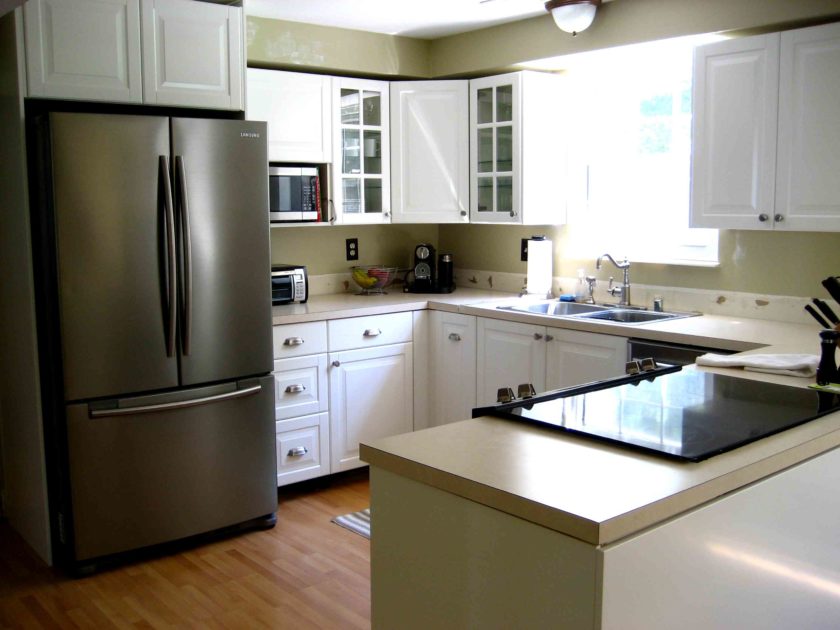 П-образный. Вместительный и удобный для хозяйки вариант, но подходит для больших помещений. В противном случае такая планировка займет слишком много пространства.