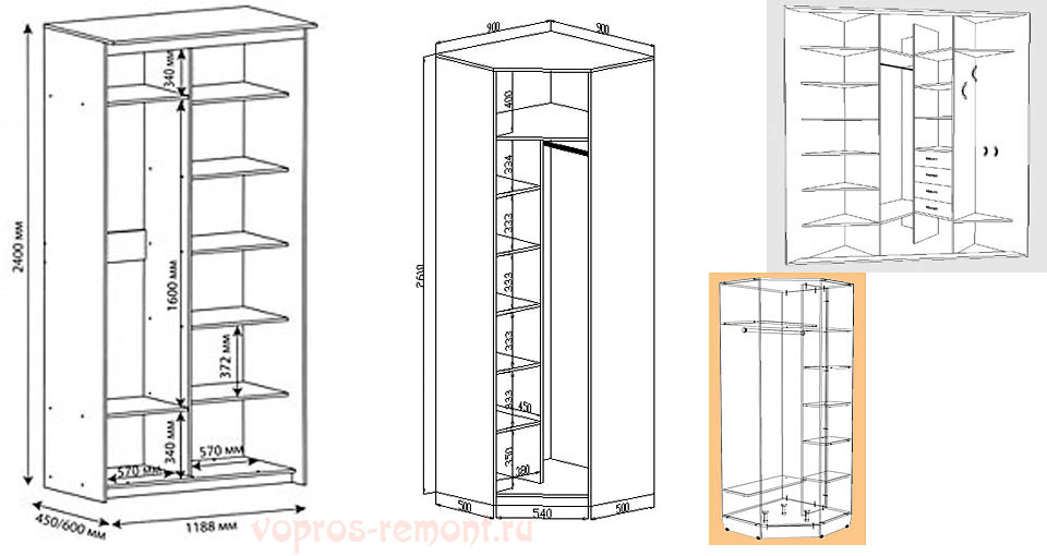 После того как клиент выбрал материал шкафа, уточнил вид его конструкции, он должен определиться с размерами