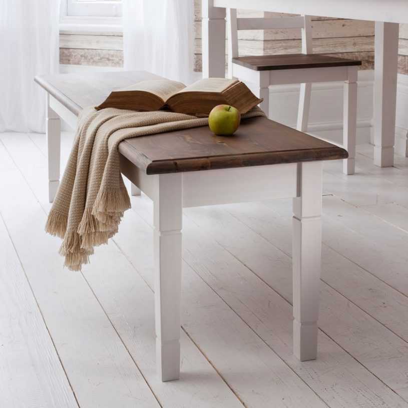 Деревянные скамейки обладают высокой ценой, но долговечны и очень красивы. Со временем при правильном уходе, перейдут в ранг антиквариата. Могут идти с тканными седушками. Сиденья могут быть обтянуты натуральной кожей и другими материалами. Отличаются наличием естественного древесного узора на поверхности изделия. Покрываются краской, лаком, морилкой для большего срока службы. Для сохранения природного рисунка в качестве покрытия используют специальный состав на воске;