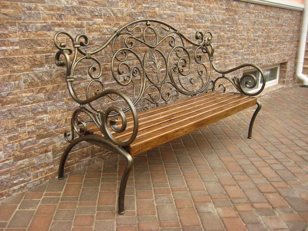 Металл, позволяет создавать скамьи своими руками на основе использования профильных трубопроводов. Однако чаще применяются кованые версии на основе этого материала.