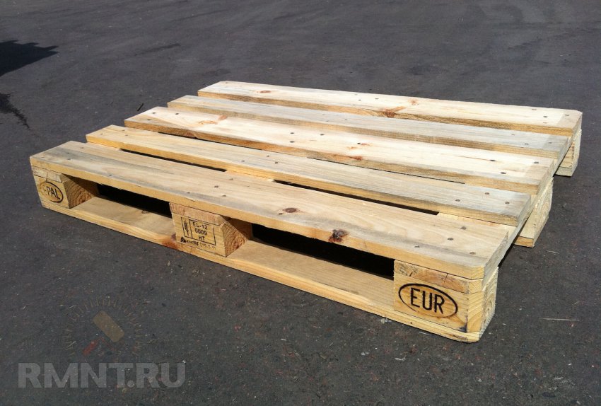 Другой бюджетный материал для дачной скамьи — паллеты (деревянные поддоны). Но для изготовления садовой мебели подойдет не любой поддон. В идеале нужен из хорошей обрезной доски, так называемый европаллет, который можно узнать по маркировке EUR.
