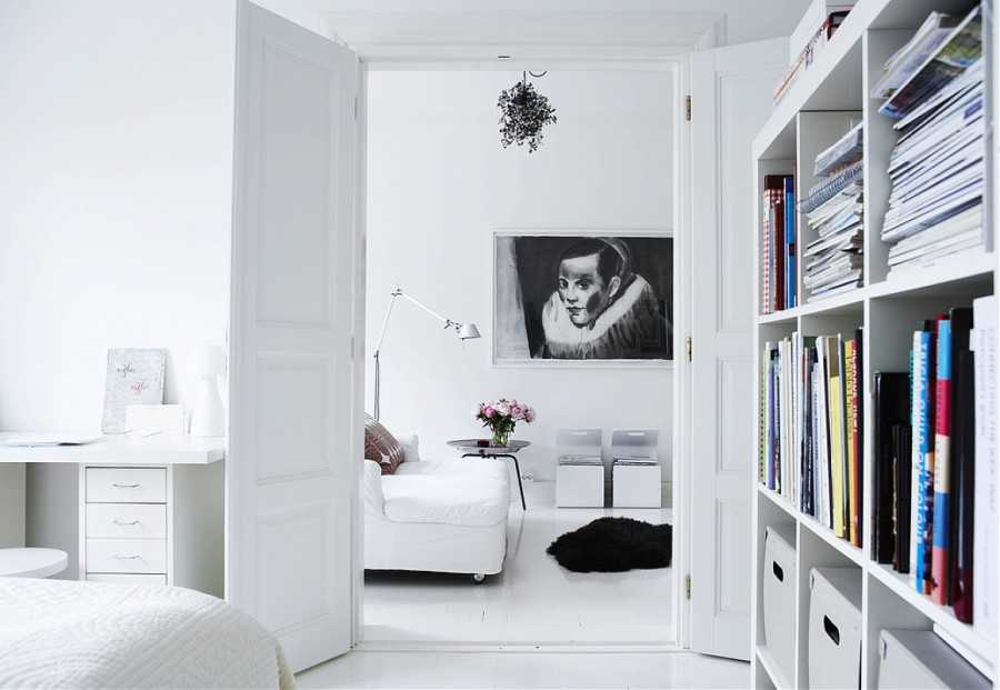 Даже монохромные интерьеры в скандинавском стиле смотрятся стильно и эффектно. Из опыта скажу, что жить в таких интерьерах очень приятно. Очень легко изменить настроение, с помощью нескольких деталей яркого цвета.