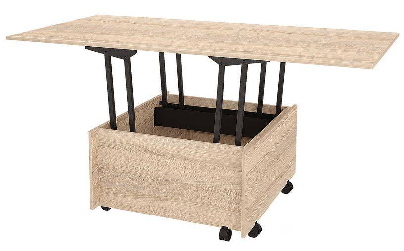Классический вариант, который отличается низкой стоимостью и экономичностью. Изделие продается в нескольких цветах, что позволит подобрать оптимальную модель для каждого интерьера. Подъемный механизм отличается высокой прочностью и не портится от частого применения. После трансформации в обеденный стол за ним поместится до 6 человек, что также неплохой результат, учитывая стоимость.
