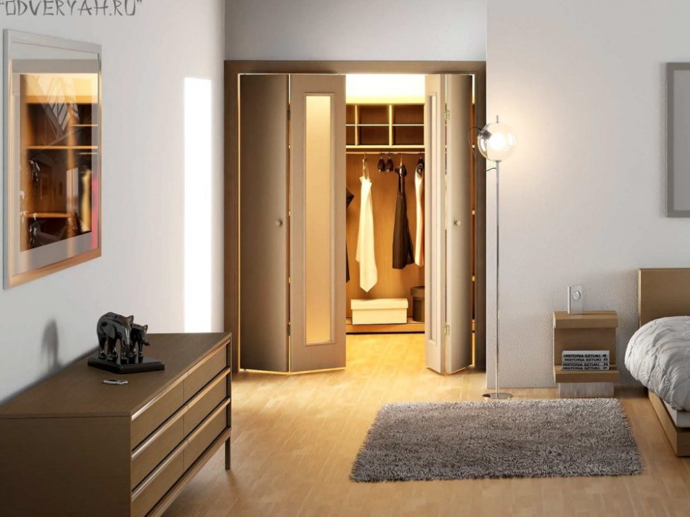 Двери-книжки выпускаются с различными конструкциями. Эти модели бывают:
