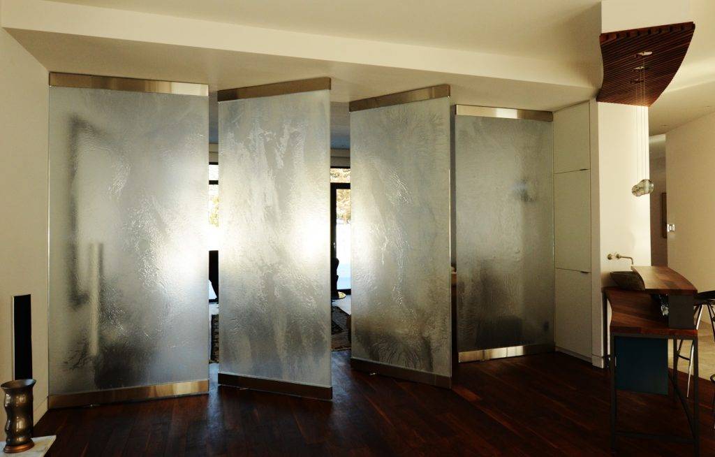 Стекло выберет не каждый, в промышленности также используется редко. Обусловлено это сравнительно невысоким спросом, непрактичностью высокой ценой готового изделия. Однако хозяин такого изделия, добавит изюминку интерьеру квартиры. Скучных складных стеклянных книжек нет. Помимо классического прозрачного, выбирают:
